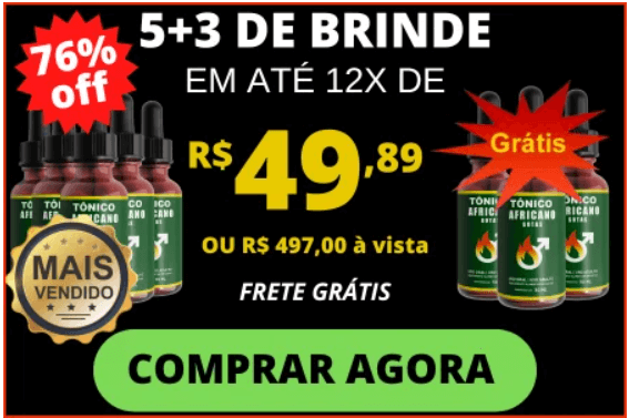 TÔNICO AFRICANO GOTA, O Estimulante Masculino 100% Natural Aprovado Pela Anvisa Que Devolve Sua Firmeza, Vigor e Confiança já Nos Primeiros Dias de Uso.
